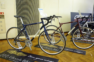 手前の青いティアグラ完成車「CORSA 1.0」は税込110,250円。奥の赤いシマノ・3400+マイクロシフト完成車「CORSA 2.0」は税込89,250円。サイズはどちらもS/M/L/XLと用意されます。重量は11.2kg(1.0)/11.4kg(2.0)と重め。雰囲気重視といったところでしょうか。