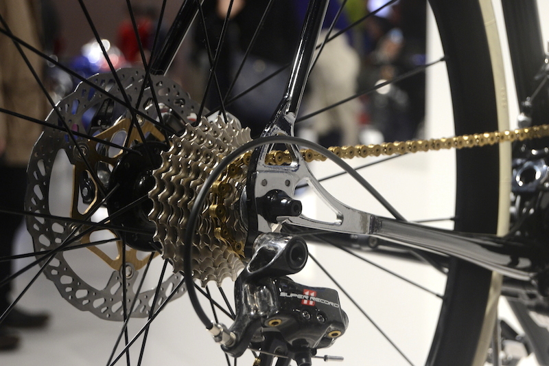 最新のユニットと懐古調のフレームのこの電動アシストロードバイク、来場者の注目度はなかなか高かったようです。このまま市販されることはないとは思いますが、市販化を模索してはいるようです。