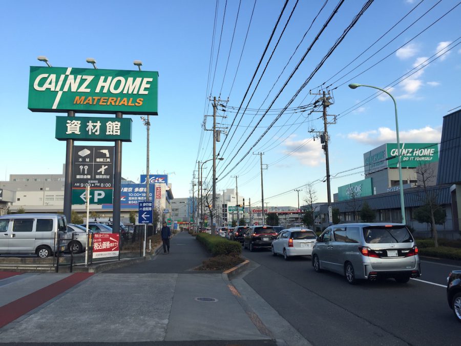 それにしても、カインズホーム、コストコ、ガソリンスタンド、その他もろもろあるせいで、週末は渋滞しています。自転車の方が速いです。自転車通行可の歩道をゆっくり通行しても、なお速い、早い。