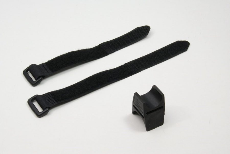 直径22~35mmの円形パイプ(ハンドルバー等)に対応し、ストラップで固定するシンプルな構造ですが、2本のストラップが部分的に重なり合うことで固定力を高めています(さすがに悪路走行には向きませんが)。