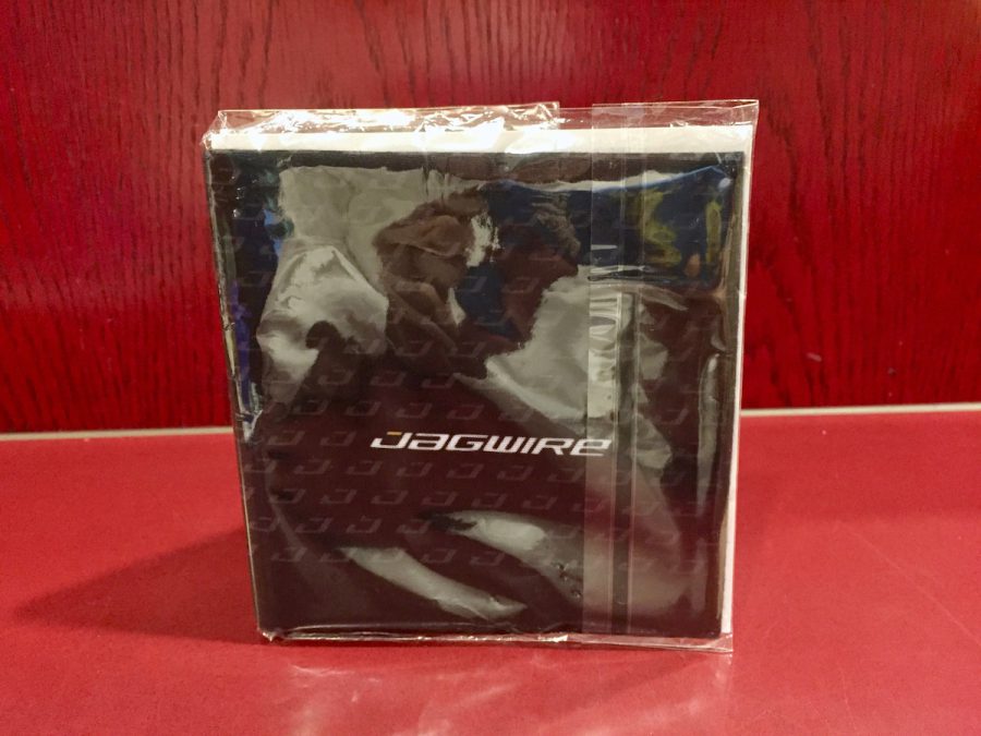 重松TAK21の展示会でいただいた、同社取扱ブランド「JAGWAIRE」のグッズ。JAGWAIREは、シフトやブレーキのケーブル類でおなじみのブランドですね。