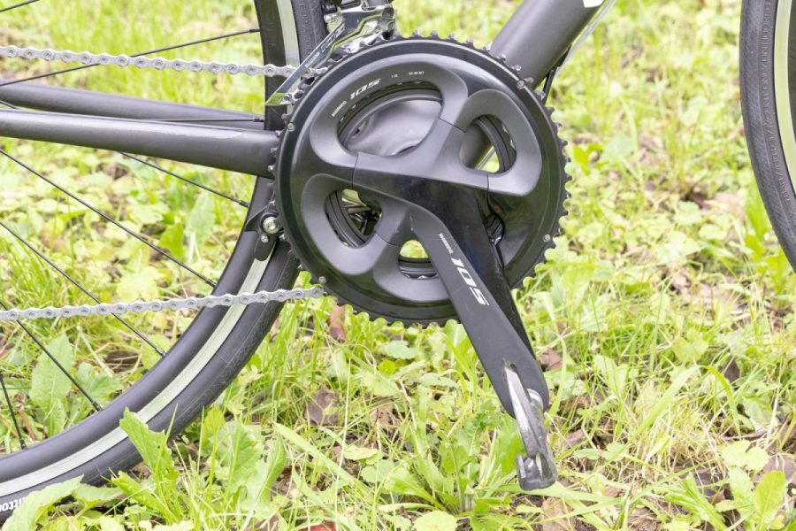 モノとしてのFR5を見ると、やはりシマノ・105をフルに採用しているのは大きいです。エントリー〜ミドルグレードのカーボンバイクですと、クランクやブレーキにシマノ以外のものが使われていることも多いのですが、このFR5は日本限定仕様として105の採用率を高めているのは好感がもてます。